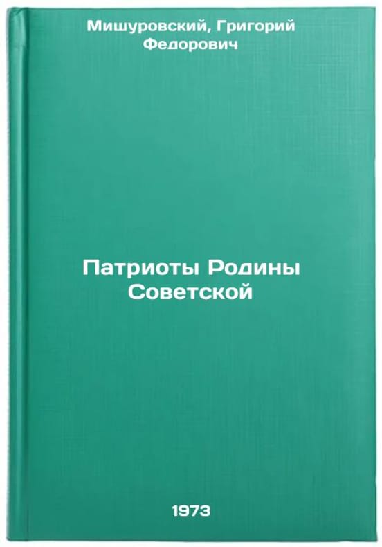 In Russian. Mishurovsky, Grigory Fedorovich. Patriots of the Soviet Motherland. Moscow: 1973. All images are for identification of editions only. Several books of the same edition may be available. Please feel free to request photos of available books. SKU7374823