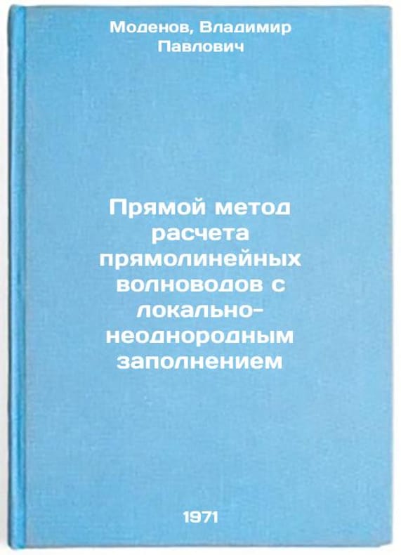 In Russian. Modenov, Vladimir Pavlovich. Direct method of calculation of rectilinear waveguides with locally non-uniform filling. Moscow: 1971. Pryamoy metod rascheta pryamolineynykh volnovodov s lokal'no-neodnorodnym zapolneniem. In Russian /Direct method for calculating rectangular waveguides with locally irregular filling . All images are for identification of editions only. Several books of the same edition may be available. Please feel free to request photos of available books. SKU7375581