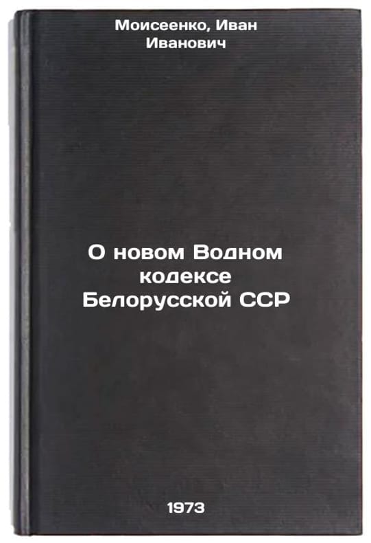 In Russian. Moiseenko, Ivan Ivanovich. On the new Water Code of the Belarusian SSR. Minsk: 1973. O novom Vodnom kodekse Belorusskoy SSR. In Russian/On the new Water Code of the Belarusian SSR. All images are for identification of editions only. Several books of the same edition may be available. Please feel free to request photos of available books. SKU7376956