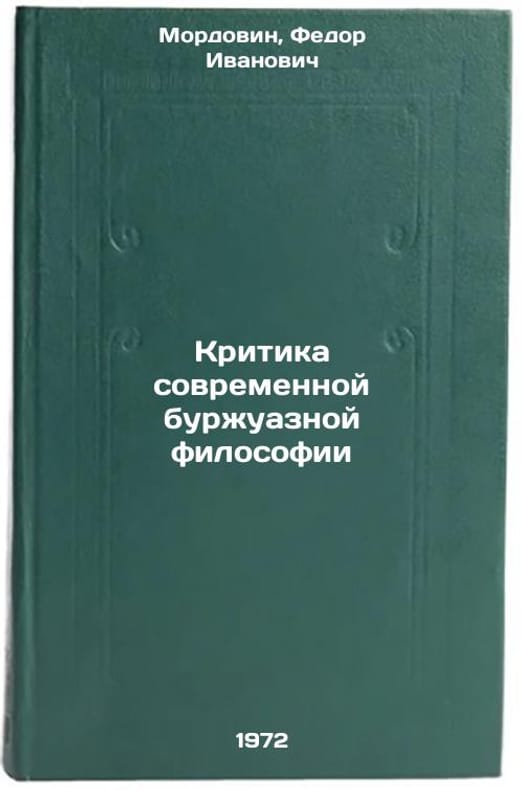 In Russian. Mordovin, Fedor Ivanovich. Criticism of modern bourgeois philosophy. Tomsk: Publishing House of Tomsk, 1972. Kritika sovremennoy burzhuaznoy filosofii. In Russian/Criticism of Modern Bourgeois Philosophy. All images are for identification of editions only. Several books of the same edition may be available. Please feel free to request photos of available books. SKU7377053
