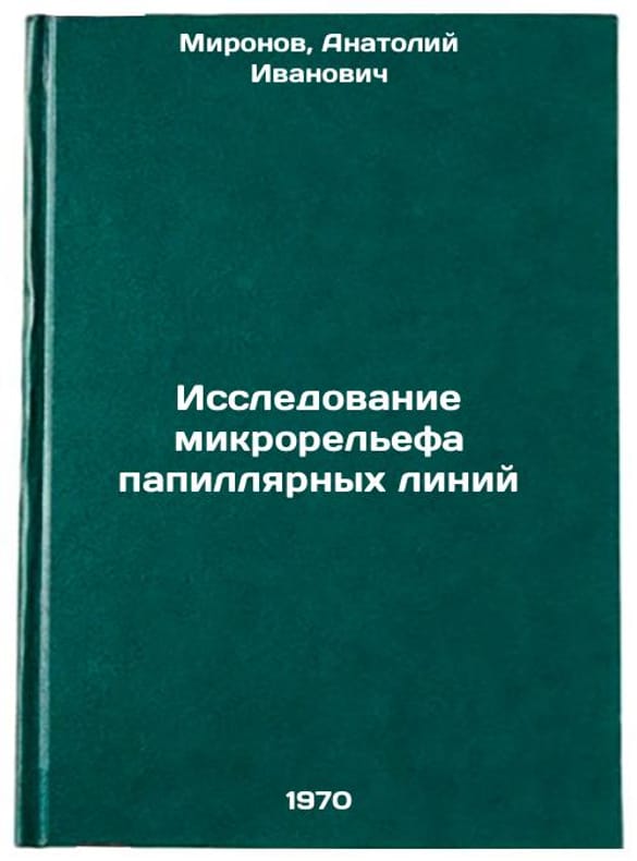 In Russian. Mironov, Anatoly Ivanovich. Micro-relief study of papillary lines. Moscow: 1970. Issledovanie mikrorel'efa papillyarnykh liniy. In Russian /Micro-relief study of papillary lines . All images are for identification of editions only. Several books of the same edition may be available. Please feel free to request photos of available books. SKU7379047