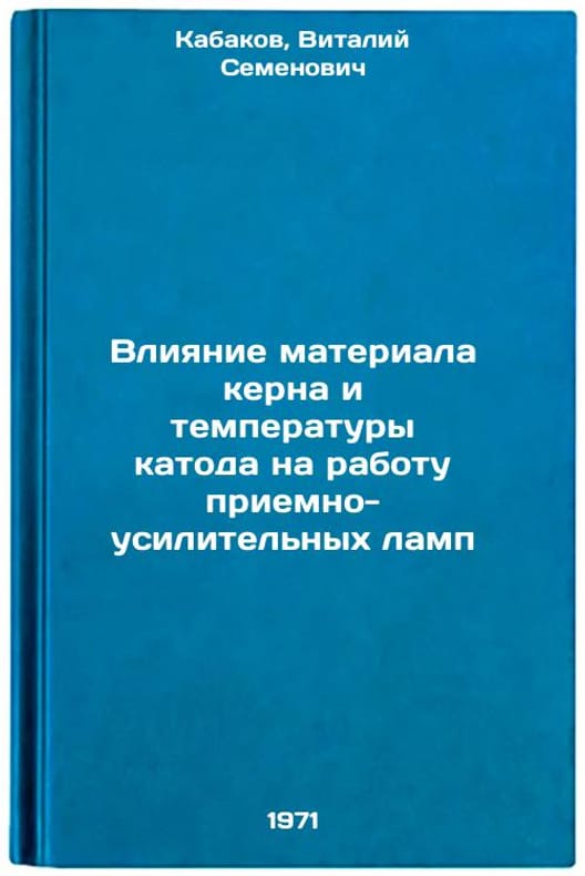 In Russian. Kabakov, Vitaly Semenovich. Influence of core material and cathode temperature on operation of receiving and amplification lamps. Moscow: 1971. Vliyanie materiala kerna i temperatury katoda na rabotu priemno-usilitel'nykh lamp. In Russian /Effect of core material and cathode temperature on the operation of receiving and amplification lamps . All images are for identification of editions only. Several books of the same edition may be available. Please feel free to request photos of available books. SKU7382218