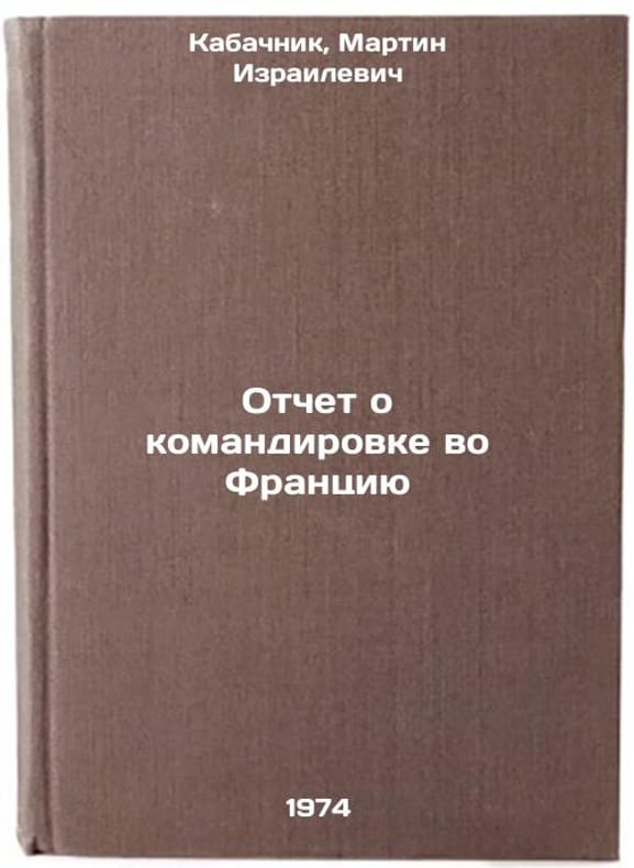 In Russian. Kabachnik, Martin Izrailevich. Report on mission to France. Moscow: 1974. All images are for identification of editions only. Several books of the same edition may be available. Please feel free to request photos of available books. SKU7382278