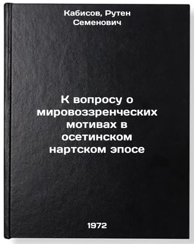 In Russian. Kabisov, Ruten Semenovich. On the question of ideological motives in the Ossetian Narta epic. Tskhinvali: Iryston, 1972. K voprosu o mirovozzrencheskikh motivakh v osetinskom nartskom epose. In Russian/On the question of worldview motives in the Ossetian Narth epic. All images are for identification of editions only. Several books of the same edition may be available. Please feel free to request photos of available books. SKU7382357