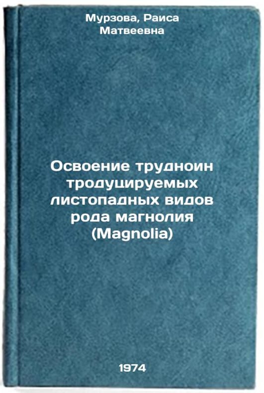 In Russian. Murzova, Raisa Matveevna. [Mastering hard-to-introduce deciduous species of the Magnolia genus]. Tashkent: Fan of the Uzbek SSR, 1974. Osvoenie trudnointrodutsiruemykh listopadnykh vidov roda magnoliya (Magnolia). In Russian /Mastery of hard-to-introduce deciduous magnolia species. All images are for identification of editions only. Several books of the same edition may be available. Please feel free to request photos of available books. SKU7383593