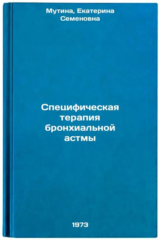 In Russian. Mutina, Ekaterina Semyonovna. Specific therapy for bronchial asthma. Moscow: Centre for Advanced Medical Education, 1973. Spetsificheskaya terapiya bronkhialnoy astmy. In Russian/Specific treatment for bronchial asthma. All images are for identification of editions only. Several books of the same edition may be available. Please feel free to request photos of available books. SKU7383800