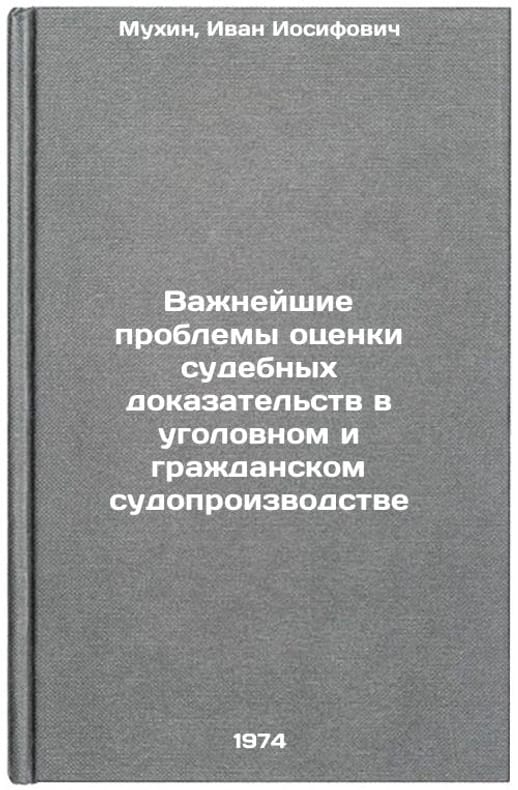 In Russian. Mukhin, Ivan Iosifovich. The most important problems of assessing forensic evidence in criminal and civil proceedings. Leningrad: Leningrad University Publishing House, 1974. Vazhneyshie problemy otsenki sudebnykh dokazatel'stv v ugolovnom i grazhdanskom sudoproizvodstve. In Russian /Critical Challenges to Assessing Forensic Evidence in Criminal and Civil Proceedings. All images are for identification of editions only. Several books of the same edition may be available. Please feel free to request photos of available books. SKU7384028