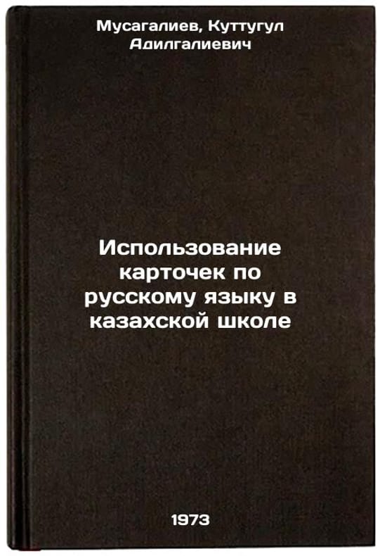 In Russian. Musagaliyev, Kuttugul Adilgaliyevich. Use of Russian language cards in Kazakh schools. Almaty: Mektep, 1973. Ispolzovanie kartochek po russkomu yazyku v kazakhskoy shkole. In Russian/Use of Russian language cards in Kazakh schools. All images are for identification of editions only. Several books of the same edition may be available. Please feel free to request photos of available books. SKU7384102