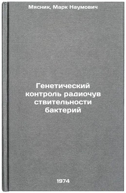 In Russian. Butcher, Mark Naumovich. Genetic Control of Bacteria's Radiosensitivity. Moscow: Atomizdat, 1974. Geneticheskiy kontrol' radiochuvstvitel'nosti bakteriy. In Russian /Genetic control of bacterial radiosensitivity. All images are for identification of editions only. Several books of the same edition may be available. Please feel free to request photos of available books. SKU7384809