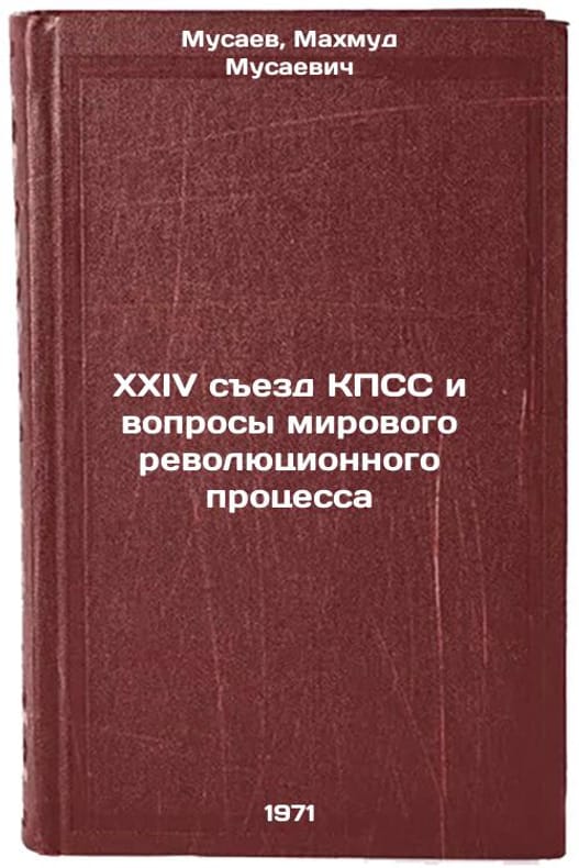 In Russian. Musaev, Makhmud Musaevich. XXIV Congress of the CPSU and the World Revolutionary Process. Tashkent: Uzbekistan, 1971. XXIV sezd KPSS i voprosy mirovogo revolyutsionnogo protsessa. In Russian /The 24th Congress of the CPSU and the World Revolutionary Process . All images are for identification of editions only. Several books of the same edition may be available. Please feel free to request photos of available books. SKU7384998
