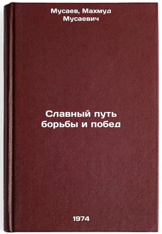 In Russian. Musaev, Makhmud Musaevich. Glorious Path of Struggle and Victory. Tashkent: Uzbekistan, 1974. All images are for identification of editions only. Several books of the same edition may be available. Please feel free to request photos of available books. SKU7385002