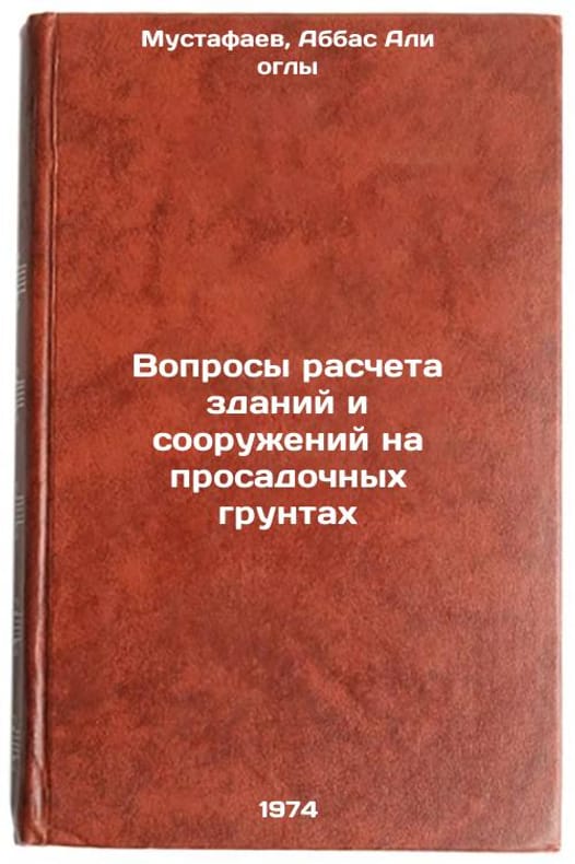 In Russian. Mustafayev, Abbas Ali ogly. Issues of calculation of buildings and structures on subsidence soil. Baku: 1974. Voprosy rascheta zdaniy i sooruzheniy na prosadochnykh gruntakh. In Russian /Calculation of buildings and structures on subsidence. All images are for identification of editions only. Several books of the same edition may be available. Please feel free to request photos of available books. SKU7385200