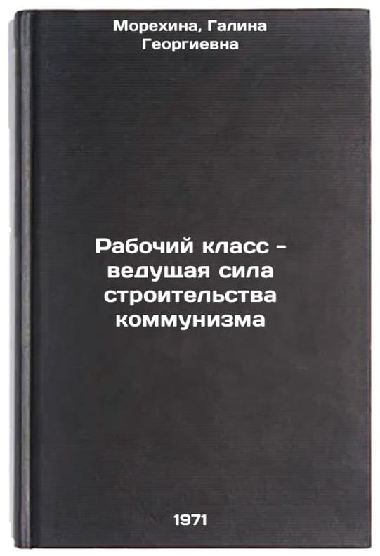 In Russian. Morekhina, Galina Georgievna. The working class is the leading force in building communism. Moscow: Znanie, 1971. Rabochiy klass - vedushchaya sila stroitel'stva kommunizma. In Russian /The working class is the leading force in building communism . All images are for identification of editions only. Several books of the same edition may be available. Please feel free to request photos of available books. SKU7385516