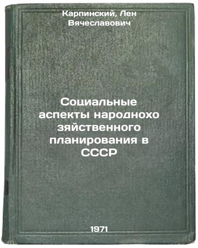 In Russian. Karpinsky, Len Vyacheslavovich. Social Aspects of Economic Planning in the USSR. Moscow: 1971. Sotsial'nye aspekty narodnokhozyaystvennogo planirovaniya v SSSR. In Russian /Social Aspects of Economic Planning in the USSR . All images are for identification of editions only. Several books of the same edition may be available. Please feel free to request photos of available books. SKU7385617