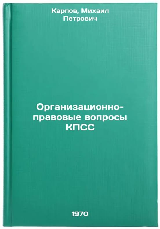 In Russian. Karpov, Mikhail Petrovich. Organizational and Legal Issues of the CPSU. Moscow: Politizdat, 1970. Organizatsionno-pravovye voprosy KPSS. In Russian /Organizational and legal issues of the CPSU . All images are for identification of editions only. Several books of the same edition may be available. Please feel free to request photos of available books. SKU7385758