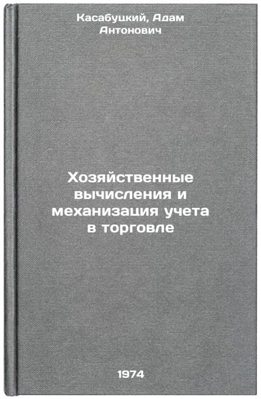 In Russian. Kasabutsky, Adam Antonovich. Economic computing and mechanization of trade accounting. Moscow: Economics, 1974. Khozyaystvennye vychisleniya i mekhanizatsiya ucheta v torgovle. In Russian /Economic computing and mechanization of trade accounting. All images are for identification of editions only. Several books of the same edition may be available. Please feel free to request photos of available books. SKU7386392