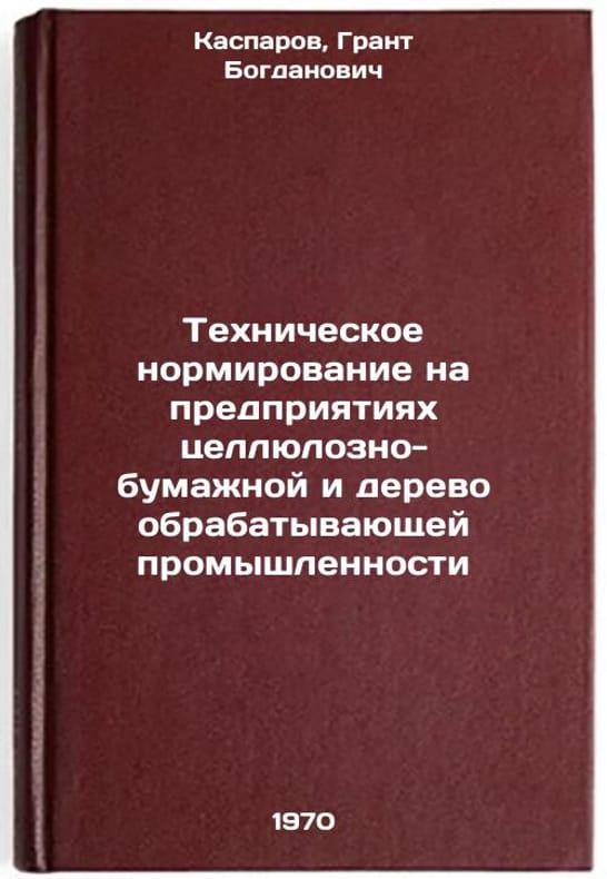 In Russian. Kasparov, Grant Bogdanovich. Technical rationing in the pulp and paper and wood processing industries. Moscow: Forest Industry, 1970. Tekhnicheskoe normirovanie na predpriyatiyakh tsellyulozno-bumazhnoy i derevoobrabatyvayushchey promyshlennosti. In Russian /Technical rationing in the pulp and paper and wood processing industries . All images are for identification of editions only. Several books of the same edition may be available. Please feel free to request photos of available books. SKU7386547