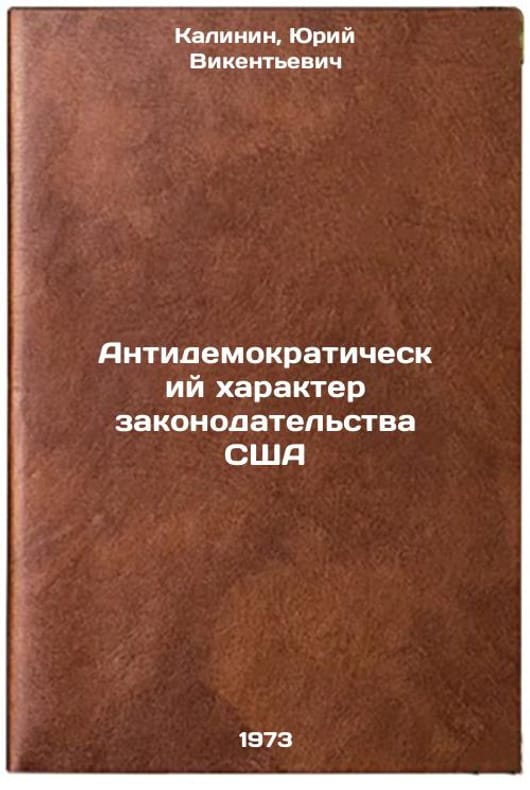 In Russian. Kalinin, Yuri Vikentyevich. Anti-democratic nature of US legislation. Minsk: 1973. Antidemokraticheskiy kharakter zakonodatelstva SShA. In Russian/Anti-democratic nature of US legislation. All images are for identification of editions only. Several books of the same edition may be available. Please feel free to request photos of available books. SKU7387426
