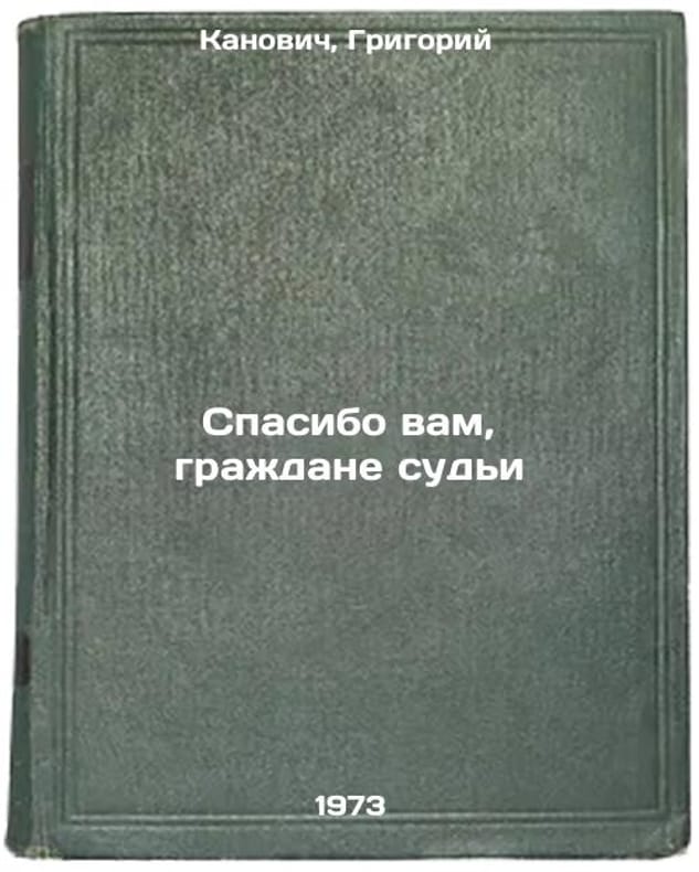 In Russian. Kanovich, Grigory. Thank you citizens of the judge. Moscow: VUOAP, 1973. All images are for identification of editions only. Several books of the same edition may be available. Please feel free to request photos of available books. SKU7388220