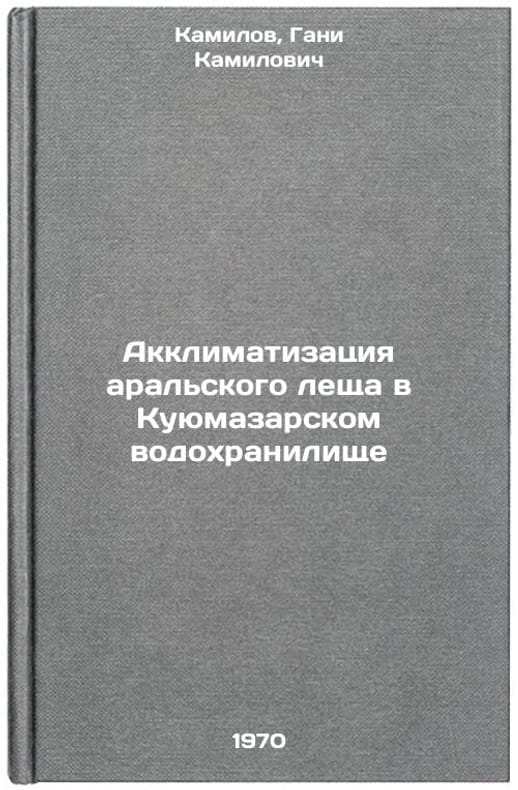 In Russian. Kamilov, Gani Kamilovich. Acclimatization of Aral bream in Kuyumazar reservoir. Tashkent: 1969 Obl. 1970. Akklimatizatsiya aral'skogo leshcha v Kuyumazarskom vodokhranilishche. In Russian /Acclimatization of Aral bream in Kuyumazar Reservoir . All images are for identification of editions only. Several books of the same edition may be available. Please feel free to request photos of available books. SKU7389547