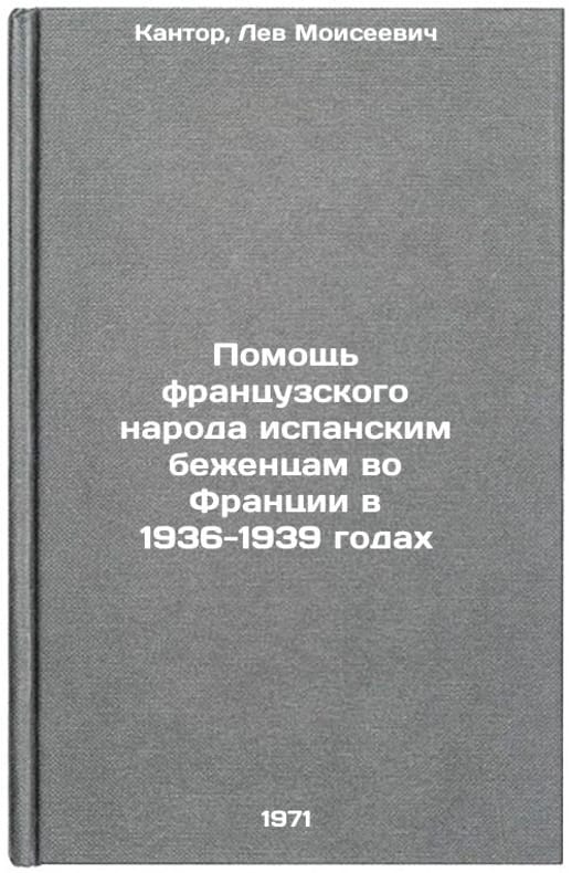 In Russian. Kantor, Lev Moiseevich. Assistance of the French people to Spanish refugees in France in 1936-1939. Yaroslavl: Verkhovna Volga Book, 1971. Pomoshch' frantsuzskogo naroda ispanskim bezhentsam vo Frantsii v 1936-1939 godakh. In Russian /Assistance of the French people to Spanish refugees in France 1936-1939 . All images are for identification of editions only. Several books of the same edition may be available. Please feel free to request photos of available books. SKU7390021