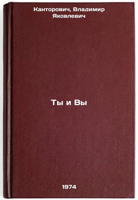 In Russian. Kantorovich, Vladimir Yakovlevich. You and You. Moscow: Politizdat, 1970. All images are for identification of editions only. Several books of the same edition may be available. Please feel free to request photos of available books. SKU7390040