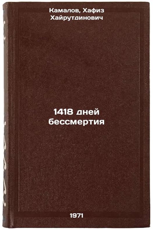 In Russian. Kamalov, Khafiz Khairutdinovich. 1418 days of immortality. Leningrad: 1971. All images are for identification of editions only. Several books of the same edition may be available. Please feel free to request photos of available books. SKU7390338