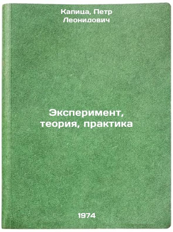 In Russian. Kapitsa, Petr Leonidovich. Experiment, theory, practice. Moscow: Science, 1974. All images are for identification of editions only. Several books of the same edition may be available. Please feel free to request photos of available books. SKU7390459