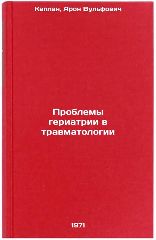 In Russian. Kaplan, Aron Vulfovich. Problems of Geriatrics in Traumatology. Moscow: 1971. All images are for identification of editions only. Several books of the same edition may be available. Please feel free to request photos of available books. SKU7390488