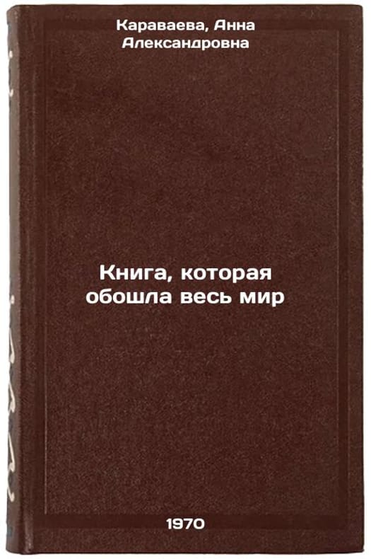 In Russian. Karavaeva, Anna Alexandrovna. The book that went around the world. Moscow: The Book, 1970. Kniga, kotoraya oboshla ves' mir. In Russian /The book that went around the world . All images are for identification of editions only. Several books of the same edition may be available. Please feel free to request photos of available books. SKU7390826