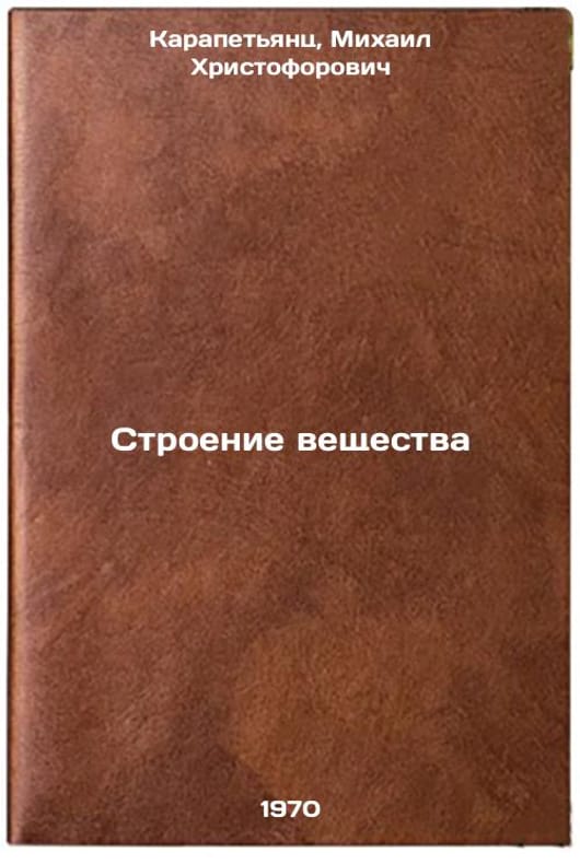 In Russian. Karapetyants, Mikhail Khristoforovich. The Structure of Matter. Moscow: Higher School, 1970. All images are for identification of editions only. Several books of the same edition may be available. Please feel free to request photos of available books. SKU7390984