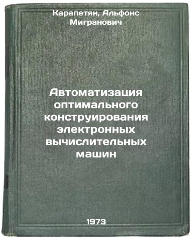 In Russian. Karapetyan, Alfons Migranovich. Automation of Optimal Design of Electronic Computing Machines. Moscow: Soviet Radio, 1973. Avtomatizatsiya optimalnogo konstruirovaniya elektronnykh vychislitelnykh mashin. In Russian/Automation of Optimal Design of Electronic Computers. All images are for identification of editions only. Several books of the same edition may be available. Please feel free to request photos of available books. SKU7390989
