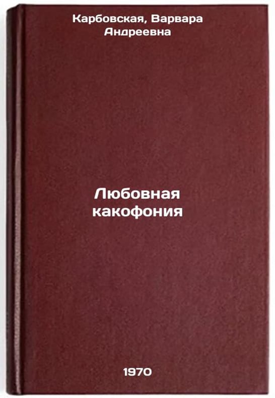 In Russian. Karbovskaya, Varvara Andreevna. Love Cacophony. Moscow: Pravda, 1970. All images are for identification of editions only. Several books of the same edition may be available. Please feel free to request photos of available books. SKU7391533