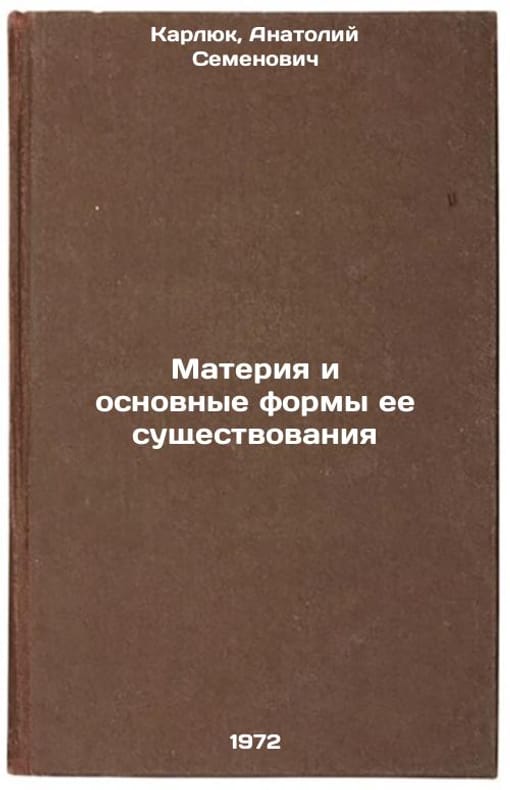 In Russian. Karlyuk, Anatoly Semyonovich. Matter and the main forms of its existence. Minsk: 1972. Materiya i osnovnye formy ee sushchestvovaniya. In Russian/Matter and its Basic Forms of Existence. All images are for identification of editions only. Several books of the same edition may be available. Please feel free to request photos of available books. SKU7391944