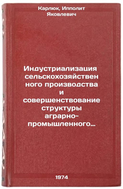 In Russian. Karlyuk, Ippolit Yakovlevich. Industrialization of agricultural production and improvement of the structure of the agro-industrial complex. Moscow: 1974. Industrializatsiya sel'skokhozyaystvennogo proizvodstva i sovershenstvovanie struktury agrarno-promyshlennogo kompleksa. In Russian /Industrialization of agricultural production and improvement of the structure of the agro-industrial complex. All images are for identification of editions only. Several books of the same edition may be available. Please feel free to request photos of available books. SKU7391945