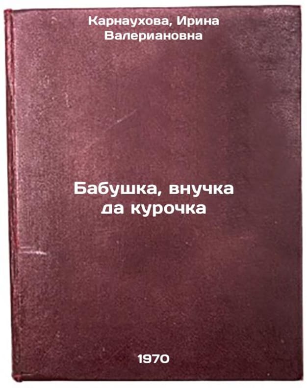 In Russian. Karnaukhova, Irina Valerianovna. Grandmother, granddaughter, and hen. Leningrad: Det. lit. Leningrad detachment, 1970. All images are for identification of editions only. Several books of the same edition may be available. Please feel free to request photos of available books. SKU7392000