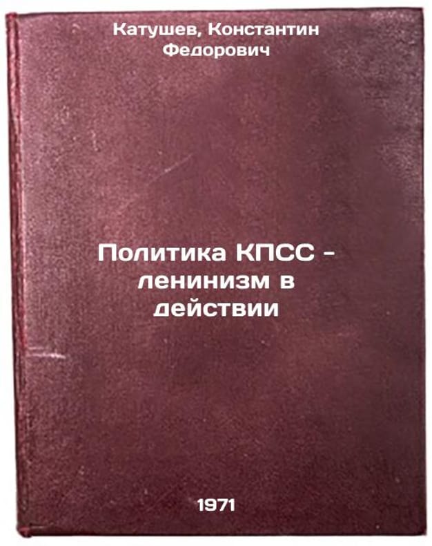 In Russian. Katushev, Konstantin Fedorovich. The Policy of the CPSU - Leninism in Action. Moscow: Politizdat, 1971. Politika KPSS - leninizm v deystvii. In Russian /CPSU Politics - Leninism in Action . All images are for identification of editions only. Several books of the same edition may be available. Please feel free to request photos of available books. SKU7392203
