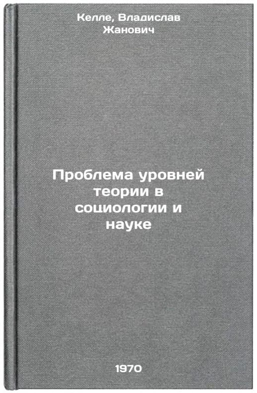 In Russian. Kelle, Vladislav Zhanovich. The Problem of Theory Levels in Sociology and Science. Moscow: 1970. Problema urovney teorii v sotsiologii i nauke. In Russian /The Problem of Theory Levels in Sociology and Science . All images are for identification of editions only. Several books of the same edition may be available. Please feel free to request photos of available books. SKU7392934