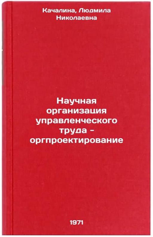 In Russian. Kachalina, Lyudmila Nikolaevna. Scientific Organization of Managerial Work - Office Design. Moscow: Economics, 1971. Nauchnaya organizatsiya upravlencheskogo truda - orgproektirovanie. In Russian /Scientific Organization of Management Work - Organizational Design . All images are for identification of editions only. Several books of the same edition may be available. Please feel free to request photos of available books. SKU7393168