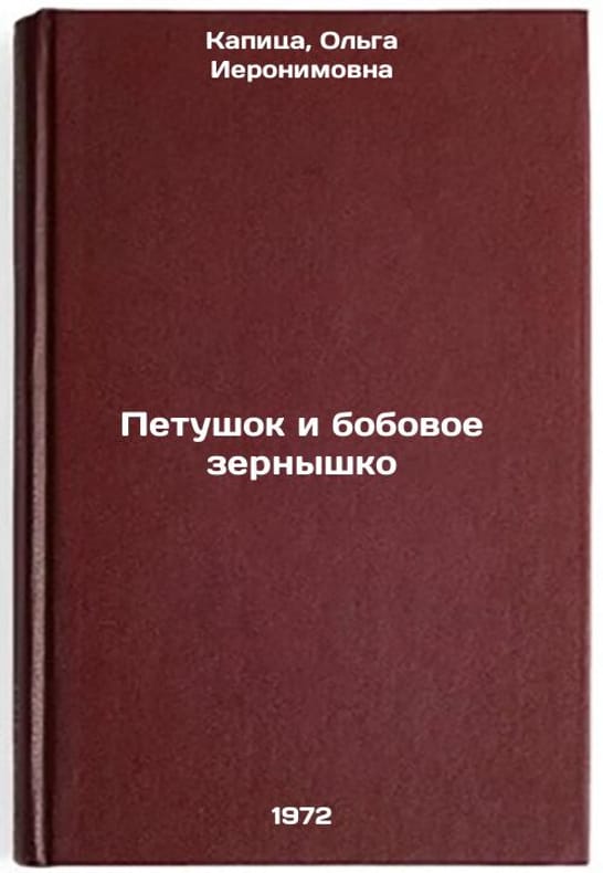 In Russian. Kapitsa, Olga Ieronimovna. Cockerel and Legumes. Moscow: Det. lit., 1977. All images are for identification of editions only. Several books of the same edition may be available. Please feel free to request photos of available books. SKU7471051