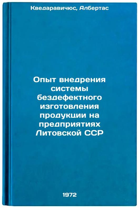 In Russian. Kvedaravicius, Albertas. Experience of introducing a system of defective manufacturing of products at enterprises of the Lithuanian SSR. Vilnius: 1972. Opyt vnedreniya sistemy bezdefektnogo izgotovleniya produktsii na predpriyatiyakh Litovskoy SSR. In Russian/Experience of introducing a system of defect-free manufacturing of products at enterprises of the Lithuanian SSR. All images are for identification of editions only. Several books of the same edition may be available. Please feel free to request photos of available books. SKU7394058