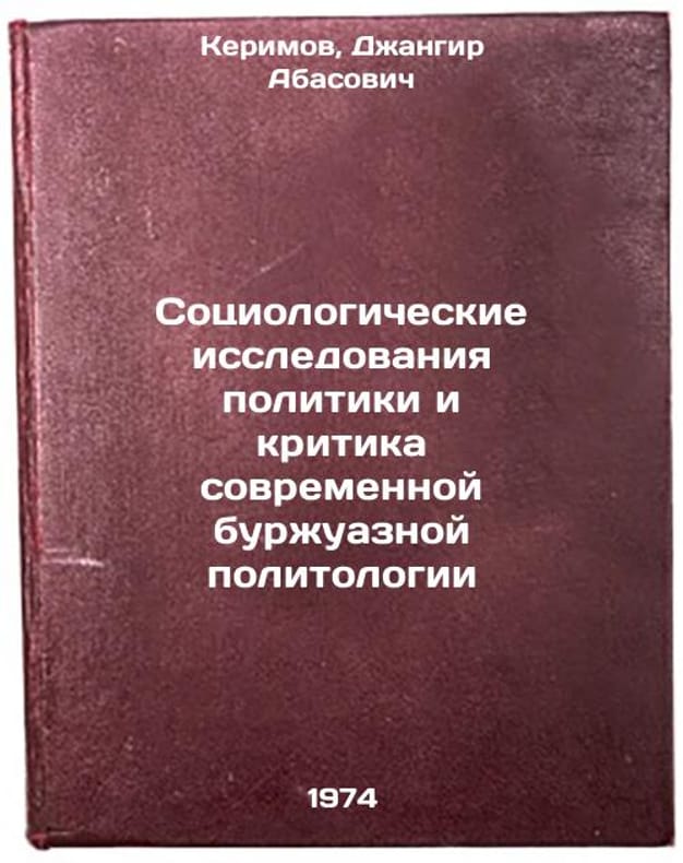 In Russian. Kerimov, Dzhangir Abasovich. Sociological studies of politics and criticism of modern bourgeois political science. Moscow: 1974. Sotsiologicheskie issledovaniya politiki i kritika sovremennoy burzhuaznoy politologii. In Russian /Sociological studies of politics and criticism of modern bourgeois political science. All images are for identification of editions only. Several books of the same edition may be available. Please feel free to request photos of available books. SKU7394504