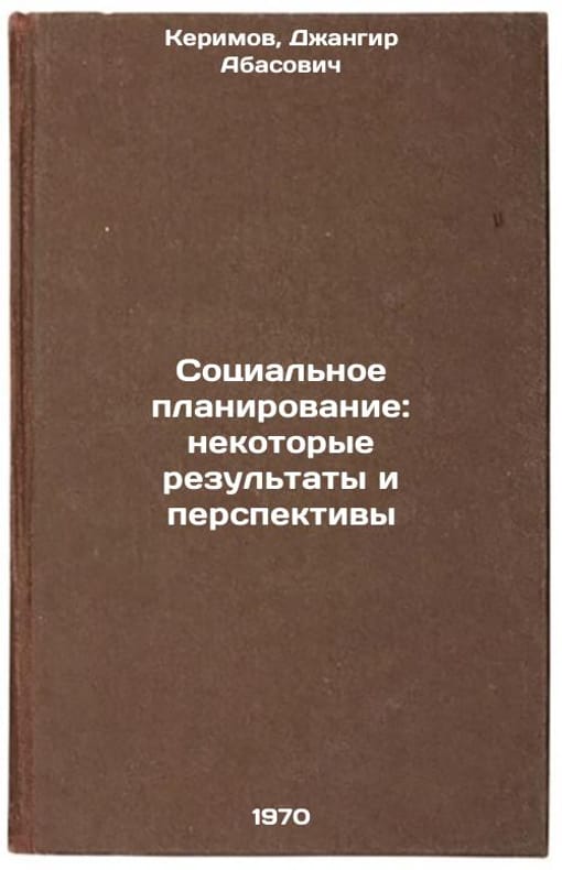 In Russian. Kerimov, Dzhangir Abasovich. Social Planning: Some Results and Prospects. Moscow: 1970. Sotsial'noe planirovanie: nekotorye rezul'taty i perspektivy. In Russian /Social Planning: Some Outcomes and Prospects . All images are for identification of editions only. Several books of the same edition may be available. Please feel free to request photos of available books. SKU7396587