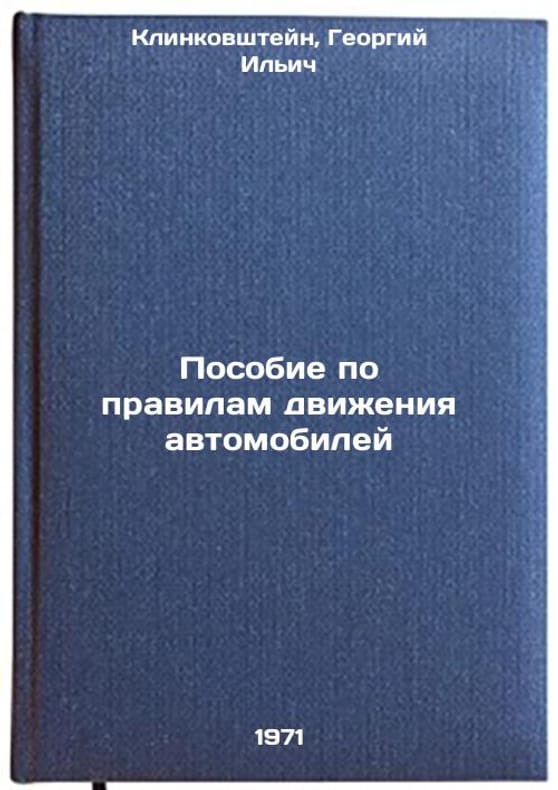 In Russian. Klinkovshtein, Georgy Ilyich. Handbook on the Rules of Motor Vehicle Traffic. Moscow: Transport, 1971. Posobie po pravilam dvizheniya avtomobiley. In Russian /Motor vehicle rules manual . All images are for identification of editions only. Several books of the same edition may be available. Please feel free to request photos of available books. SKU7400064
