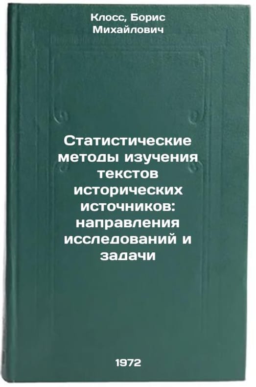 In Russian. Kloss, Boris Mikhailovich. Statistical methods of studying texts of historical sources: directions of research and tasks. Moscow: 1972. Statisticheskie metody izucheniya tekstov istoricheskikh istochnikov: napravleniya issledovaniy i zadachi. In Russian/Statistical methods of studying texts from historical sources: research directions and challenges. All images are for identification of editions only. Several books of the same edition may be available. Please feel free to request photos of available books. SKU7396931