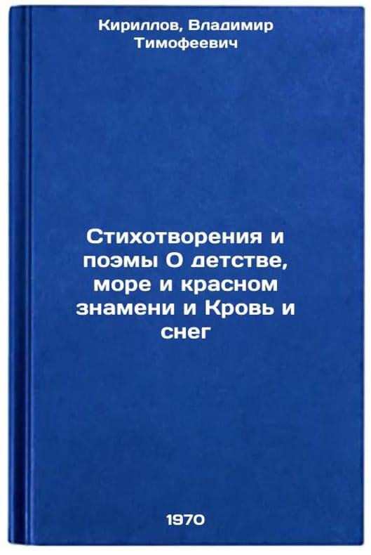 In Russian. Kirillov, Vladimir Timofeevich. Poems and Poems [On Childhood, the Sea and the Red Banner and Blood and Snow]. Moscow: Art Lit., 1970. Stikhotvoreniya i poemy O detstve, more i krasnom znameni i Krov' i sneg. In Russian /Poems and Poems On Childhood, the Sea and the Red Banner and Blood and Snow . All images are for identification of editions only. Several books of the same edition may be available. Please feel free to request photos of available books. SKU7397173