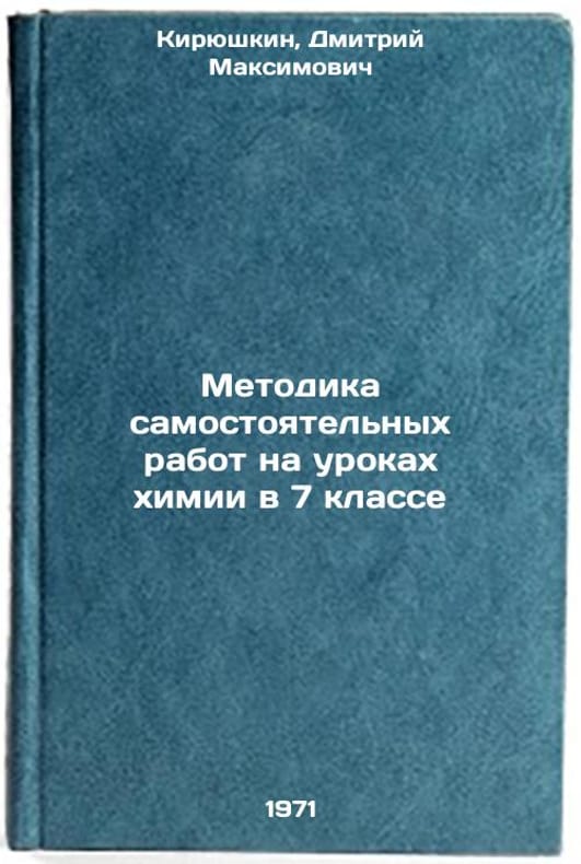 In Russian. Kiryushkin, Dmitry Maksimovich. Methodology of independent work in chemistry lessons in the 7th grade. Moscow: Enlightenment, 1971. Metodika samostoyatel'nykh rabot na urokakh khimii v 7 klasse. In Russian /Methodology of independent work in chemistry lessons in the 7th grade . All images are for identification of editions only. Several books of the same edition may be available. Please feel free to request photos of available books. SKU7397458