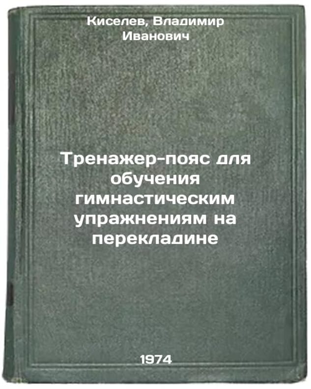 In Russian. Kiselev, Vladimir Ivanovich. Gymnastics training belt on the bar. Moscow: Physical Culture and Sports, 1974. Trenazher-poyas dlya obucheniya gimnasticheskim uprazhneniyam na perekladine. In Russian /Gym belt for gymnastics on the bar. All images are for identification of editions only. Several books of the same edition may be available. Please feel free to request photos of available books. SKU7397833