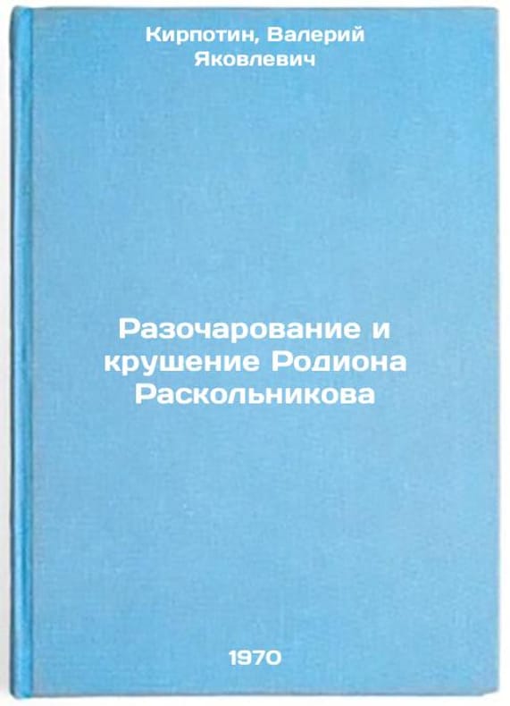 Short description: In Russian. Kirpotin, Valery Yakovlevich. The Disappointment and Crash of Rodion Raskolnikov. Moscow: The Soviet Writer, 1974. Razocharovanie i krushenie Rodiona Raskol'nikova. In Russian /The Disappointment and Crash of Rodion Raskolnikov. The image is provided for reference only. It may reflect condition of one of the available copies or only help in identifying the edition. Please feel free to contact us for a detailed description of the copies available. SKU7398867