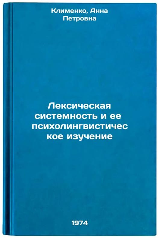 In Russian. Klimenko, Anna Petrovna. The lexical system and its psycholinguistic study. Minsk: Minsk: Minsk: Minsk in Foreign Language, 1974. Leksicheskaya sistemnost' i ee psikholingvisticheskoe izuchenie. In Russian /Lexicological systems and their psycholinguistic learning. All images are for identification of editions only. Several books of the same edition may be available. Please feel free to request photos of available books. SKU7399237